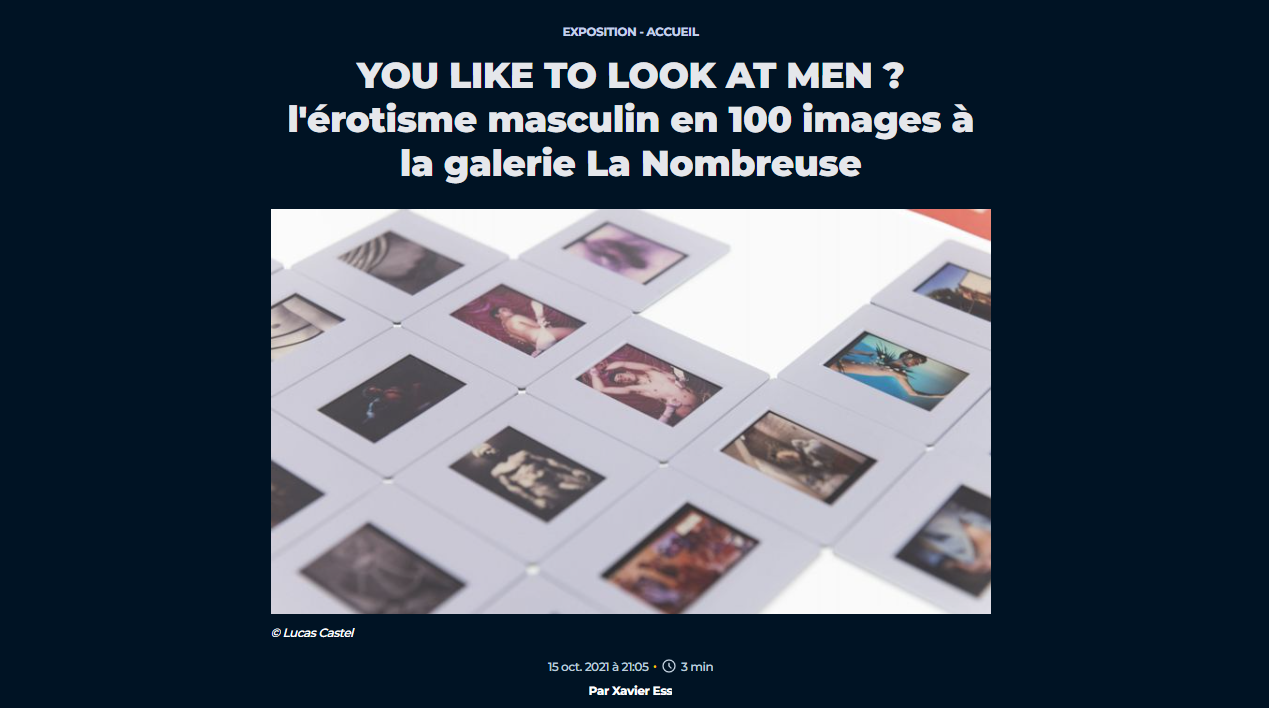Ma participation à l’archive collective de photographie érotique d’homme du Collectif Lusted Men a été retenue. Elle a été exposée dans la collection 2020 lors de l’exposition collective You like to look at men? à La Nombreuse de Bruxelles.